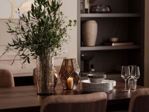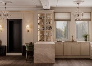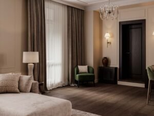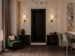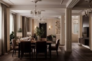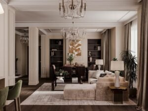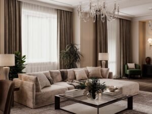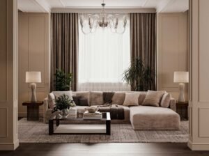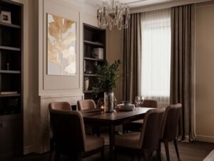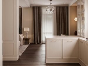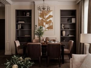 This one-bedroom apartment on the West Side of Manhattan was thoughtfully designed to maximize both style and comfort in a compact city space. The interior design features a sophisticated mix of deep brown and soft beige tones, creating a warm and inviting atmosphere. Green accents were introduced to add vibrancy and balance, giving the home a fresh and contemporary edge.